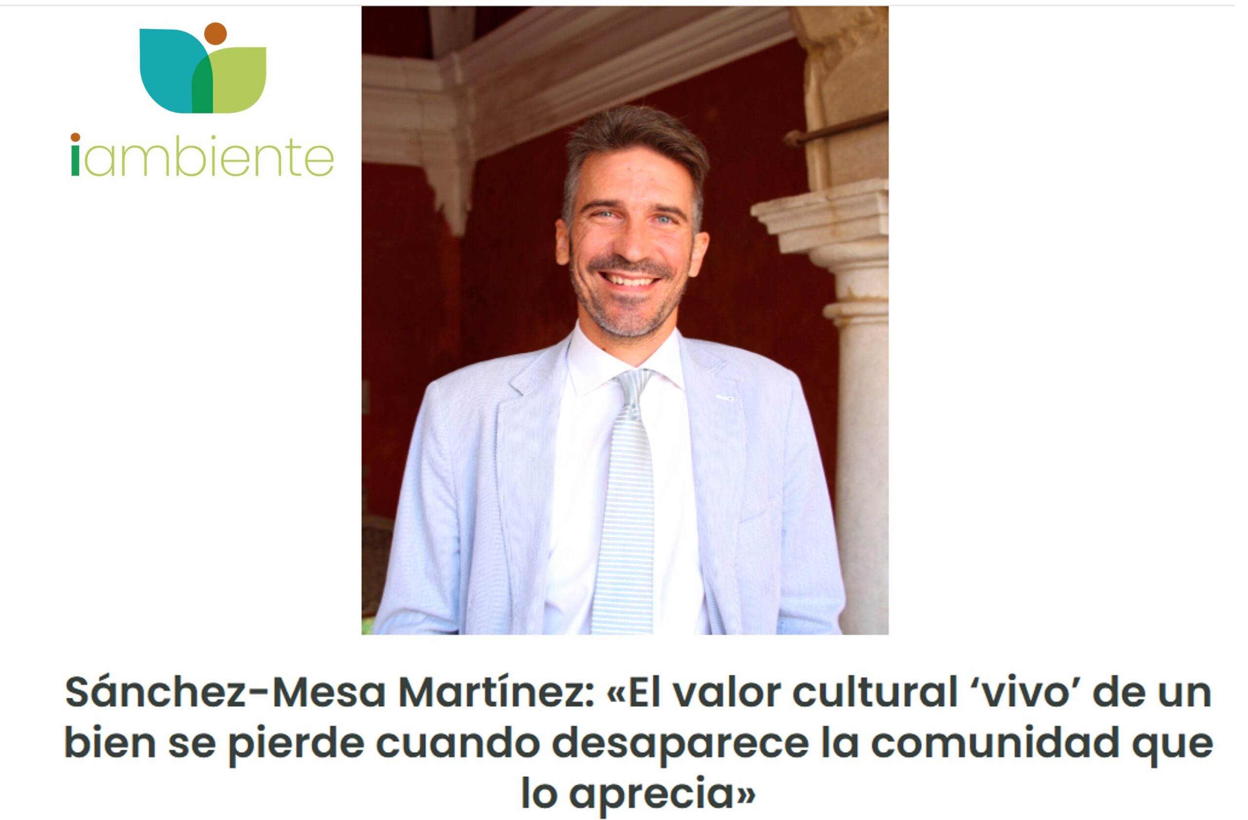 Ha determinado en la entrevista que “el Patrimonio cultural y su adecuada preservación es también un indicador de calidad de vida, un factor que favorece la cohesión social y el afianzamiento de la identidad local, elementos que pueden implementar el atractivo de una zona no sólo para visitarla sino también para asentarse en ella”. Para él, “el valor cultural “vivo” de un bien se pierde cuando desaparece la comunidad que lo aprecia”.